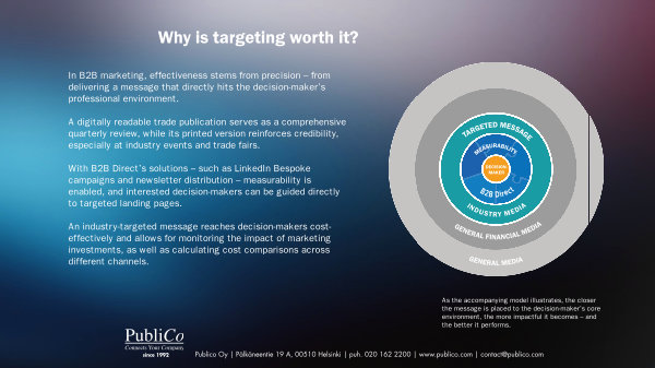 In B2B marketing, effectiveness stems from precision – from delivering a message that directly hits the decision-maker’ s professional environment.