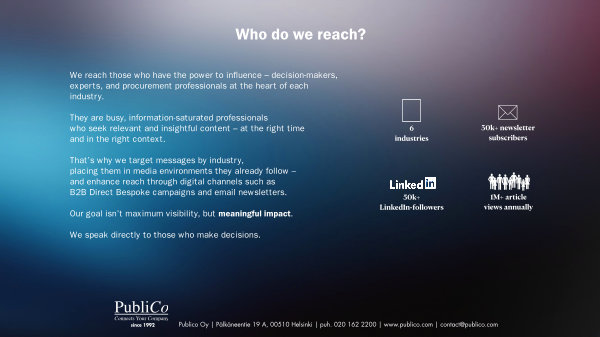 Publico Oy | Pälkäneentie 19 A, 00510 Helsinki | puh. 020 162 2200 | www. publico. com | contact @ publico. com